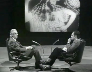 Enzo Siciliano conversa con Giorgio Colli nella trasmissione RAI "Settimo giorno"
