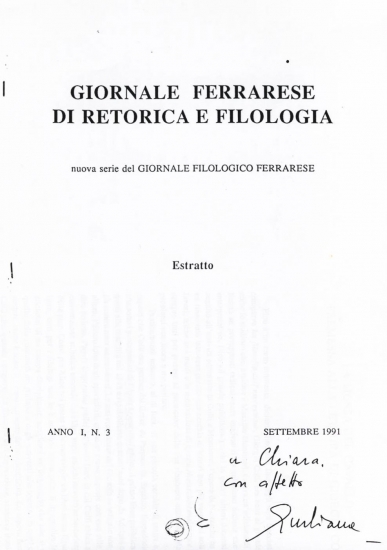 | Rivista | Giornale ferrarese di retorica e filologia |